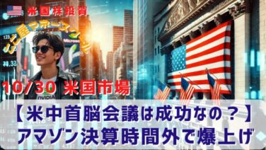 市場分析 【米中首脳会議は成功なの?】アマゾン決算時間外で爆上げ 昨日の米国市場は大きく下落しました。FOMCを無事に通過してメガテックの決算が発表されはじめましたが、どうやら投資家の警戒は高まっているようです。また、韓国での米中首脳会談では『上手くいった』と語るトランプ大統領に対して、実際にはそこまでの... 2025.10.31 市場分析