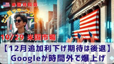 市場分析 【12月追加利下げ期待は後退】Googleが時間外で爆上げ 昨日の米国市場は横ばい。10月のFOMCでは前月に続き政策金利は0.25%引き下げられ、金利の誘導目標レンジは3.75-4%にまで下がりました。しかし、パウエル議長が12月の追加利下げは当然と想定すべきではない警告をしたことが、市場の警戒感... 2025.10.30 市場分析