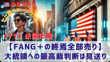 市場分析 【FANG+の終焉全部売り】大統領への最高裁判断は見送り 昨日の米国市場は大きく下落しました。トランプ大統領の関税政策について、最高裁は意見公表を見送ったことで不確実性が高まりました。また、生産者物価指数や小売売上高などの経済指標が発表され、ベージュブックの公表など市場に影響のある出来事が集中しま... 2026.01.15 市場分析