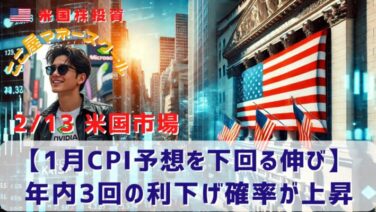 市場分析 【1月CPI予想を下回る伸び】年内3回の利下げ確率が上昇 昨日の米国市場はわずかに上昇しました。1月の消費者物価指数が発表されましたが、予想を下ブレる伸びで利下げ観測が高まりました。もう何が発表されても上げることはなくなってしまった米国株ですが、上昇の起爆剤は何が残っていますかね?それでは昨日の米... 2026.02.14 市場分析