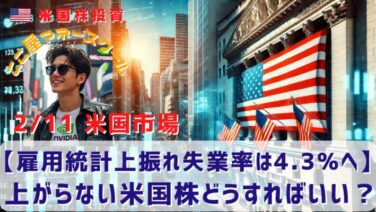 市場分析 【雇用統計上振れ失業率は4.3%へ】上がらない米国株どうすればいい? 昨日の米国市場はわずかに下落。雇用統計が発表され非農業部門雇用者数が上ブレたことで、利下げ観測が後退したようです。個人投資家としては、なかなか上がらない米国株にそろそろシビレを切らす頃でしょうか?まあ落ち着いてジックリ相場を見ていきましょう... 2026.02.12 市場分析
