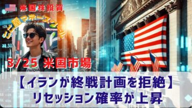 市場分析 【イランが終戦計画を拒絶】リセッション確率が上昇 昨日の米国市場は上昇ました。イランが停戦を受け入れず、イスラエルや湾岸諸国への攻撃を継続すると表明しています。ただし、米国の停戦に向けた組みが好感されて、株価は上昇したようです。それでは昨日の米国市場を振り返っていきましょう。リッヒ記事後半... 2026.03.26 市場分析