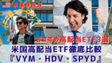米国ETF 2026年おすすめ米国高配当ETF3選『VYM・HDV・SPYD』徹底比較! 人気急上昇中の米国高配当ETFを徹底分析!気になる銘柄の『VYM・HDV・SPYD』の過去実績と2026年以降の展望を比較分析!まだまだ高配当株は割高ではない!このチャンスを見逃すな! 2021.01.09 米国ETF