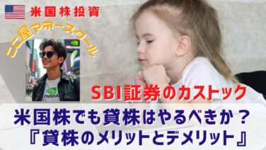 証券会社関連 【SBI証券のカストック】米国株でも貸株はやるべきか?『貸株のメリットとデメリット』 貸株サービスについて徹底解説!貸株のメリットとデメリットを解説!貸株サービスを利用するか迷っている人の悩みを解決!『株主優待は受け取れる?』『配当金は受け取れるの?』こんな悩みに答えます!米国株・ETFの貸株ができるのはSBI証券だけ! 2021.07.13 証券会社関連金融リテラシー