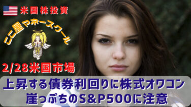 市場分析 【上昇する債券利回りに株式オワコン】崖っぷちのS&P500に注意 こんなことがわかる記事・2/28米国市場の値動き・S&P500指数の展望・米国経済に関するトピックス⇩クリックでランキングの応援をしてください。(応援してくれるみなさん、いつもありがとうございます。)昨日の米国市場はダウを中心に下落したこと... 2023.03.01 市場分析