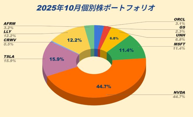 2025年10月には個別株の入れ替えはなく、保有銘柄数としては9銘柄のままです。