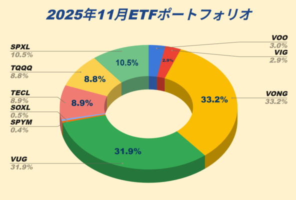 保有しているETFの大半がグロース系ETFが占めていますが、一部はレバレッジETFも保有しています。