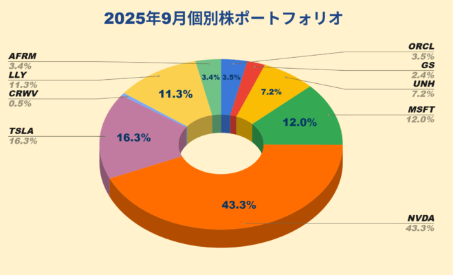 2025年9月には個別株の入れ替えはなく、保有銘柄数としては9銘柄のままです。