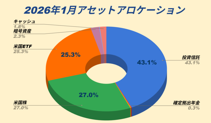 そこで今回の記事では、筆者のアセットアロケーションと2026年1月のポートフォリオ公開をしていきたいと思います。