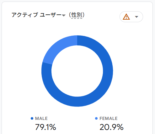 男女比率は男性79.1%、女性20.9%と男性の方が圧倒的に多い状況ですが、ありがたいことに女性の方にも意外と訪問いただいています。