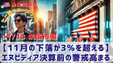 市場分析 【11月の下落が3%を超える】エヌビディア決算前の警戒高まる 昨日の米国市場は大きく下落しました。エヌビディアの決算を前に市場は警戒感を高めています。それでは昨日の米国市場を振り返っていきましょう。リッヒ記事後半では重要な経済ニュースや今後のS&P500について解説するでクリックでランキングの応援して... 2025.11.18 市場分析