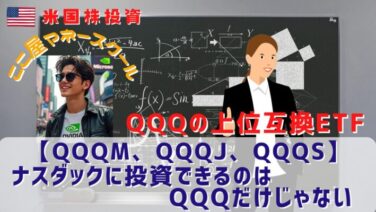 米国ETF QQQの上位互換ETF【QQQM、QQQJ、QQQS】ナスダックに投資できるのはQQQだけじゃない! ナスダック100に投資できるETFはQQQだけじゃない!QQQMはQQQよりも経費率が低い上位互換のETFだった!他にも次世代ナスダックに投資できるQQQJや特許価値がもっとも高い小型株に投資できるQQQSについて徹底解説しています! 2023.08.19 米国ETF