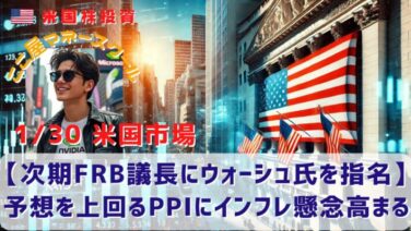 市場分析 【次期FRB議長にウォーシュ氏を指名】予想を上回るPPIにインフレ懸念高まる 昨日の米国市場は前日に続けて下落しました。トランプ大統領が次期FRB議長にケビン・ウォーシュ元FRB理事を指名すると明らかにしましたが、市場は好感しなかったようです。また、企業決算も本格化していますが、ハイテクは売られバリューが買われた1日... 2026.01.31 市場分析