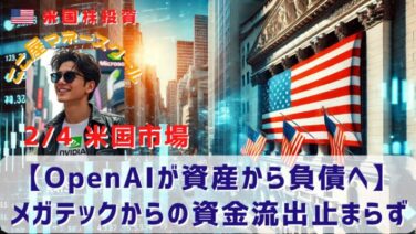 市場分析 【OpenAIが資産から負債へ】メガテックからの資金流出止まらず 昨日の米国市場はダウが上昇するなかでナスダックが売られました。大型ハイテク株の売りが止まらず、幅広い銘柄へのローテーションが加速しています。市場では経済成長の恩恵を受ける企業を求めて、ハイテク株から小型株やバリュー株などへ資金をシフトする動... 2026.02.05 市場分析