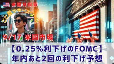 市場分析 【0.25%利下げのFOMC】年内あと2回の利下げ予想 昨日の米国市場はわずかに下落しました。FOMCでは予想通り0.25%の利下げが発表されましたが、市場に動揺は見られませんでした。一方で、今後の利下げに対しては慎重な姿勢を崩していないものの、年内にも複数回の引き下げが予定されていそうです。強... 2025.09.18 市場分析