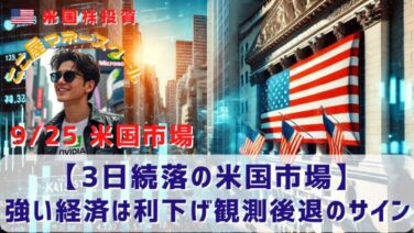 市場分析 【3日続落の米国市場】強い経済は利下げ観測後退のサイン 昨日の米国市場は3日連続の下落となりました。発表された経済統計では景気が底堅いことが示されましたが、株価の割高感への警戒が広がったようです。3日で▲1.33%下げたS&P500ですが、ドル円は2ヶ月ぶりの高水準で1ドル150円に迫っています... 2025.09.26 市場分析