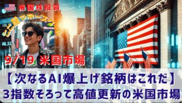 市場分析 【次なるAI爆上げ銘柄はこれだ】3指数そろって高値更新の米国市場 昨日の米国市場は上昇しました。利下げ期待を背景に3指数そろって高値を更新しています。昨日はトリプルウィッチングで売りが警戒されましたが、大きな値動きをもたらす要因にはなりませんでした。それでは昨日の米国市場を振り返っていきましょう。リッヒ記... 2025.09.20 市場分析