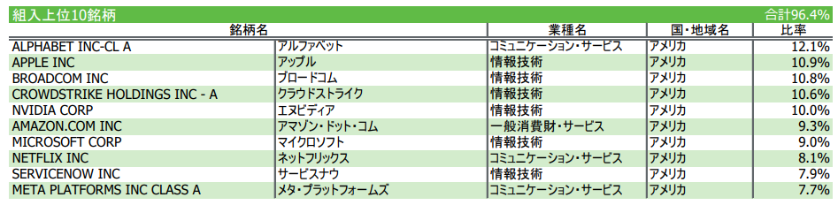 大和-iFreeNEXT FANG+インデックスの組入れ銘柄