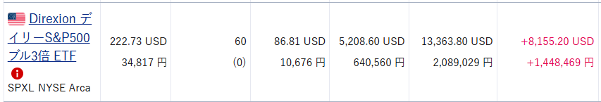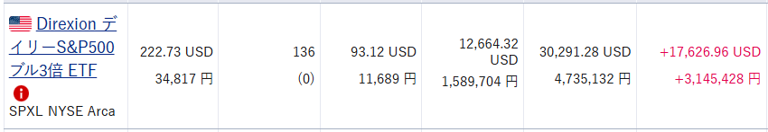 それでは続けて筆者が保有するSPXLの運用実績を紹介していきます。
