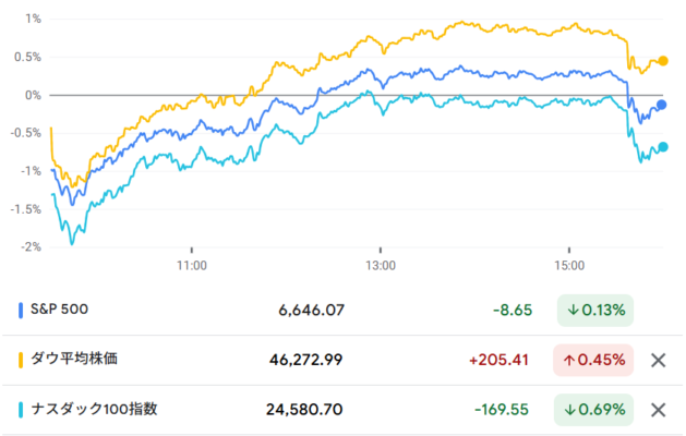 マグニフィセント7は2銘柄が上昇、5銘柄が下落。NVDAが▲4.40%、AMZNが▲1.67%、TSLAが▲1.53%と大きく下げています。