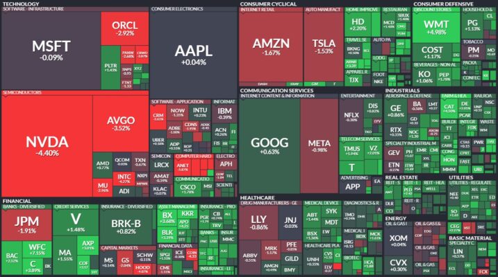 昨日のS&P500のヒートマップを眺めると、多くの銘柄が上昇していることが分かります。