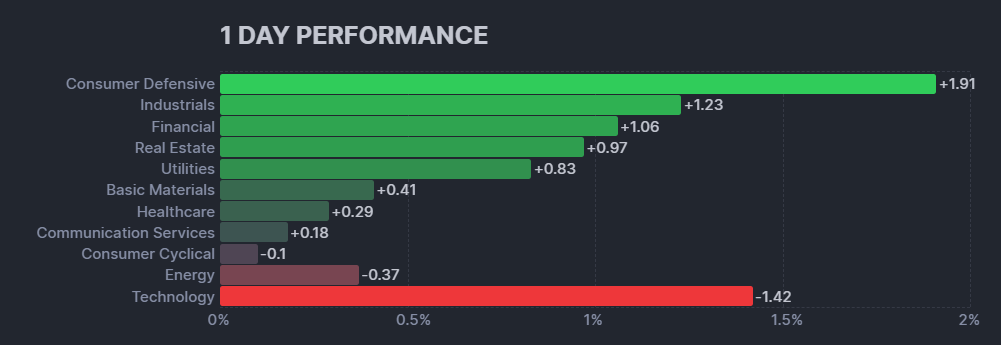 昨日のセクター別パフォーマンスは8セクターが上昇、3セクターが下落した1日となりました。