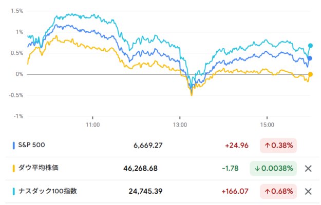 米主要3指数の値動き