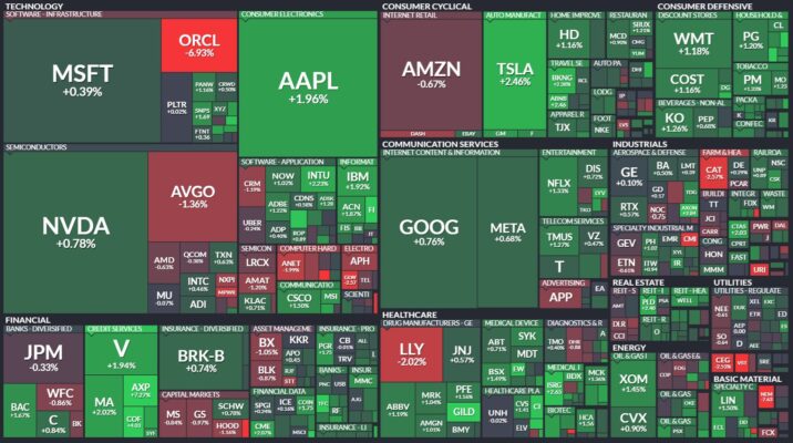 昨日のS&P500のヒートマップを眺めると、多くの銘柄が上昇していることが分かります。