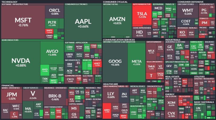 昨日のS&P500のヒートマップを眺めると、ほとんどの銘柄が上昇したことがわかります。