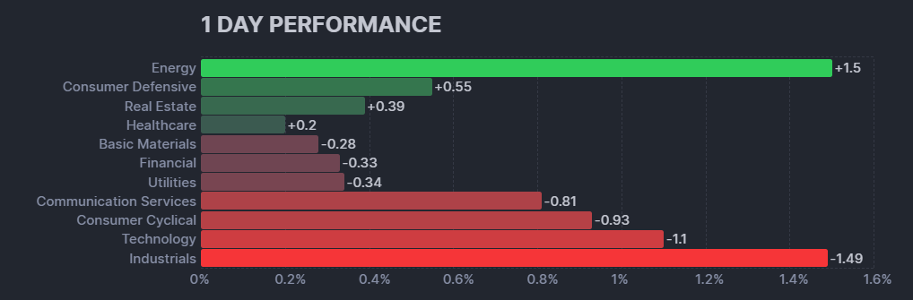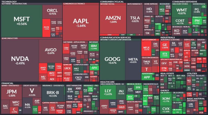 昨日のS&P500のヒートマップを眺めると、下げた銘柄の方が多かったように見えます。