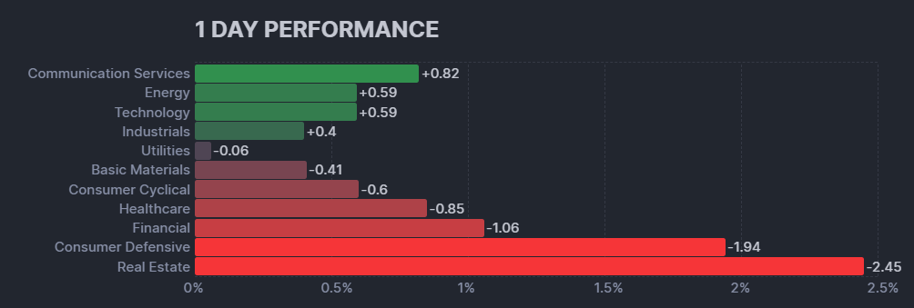 昨日のセクター別パフォーマンスは4セクターが上昇、7セクターが下落した1日となりました。
