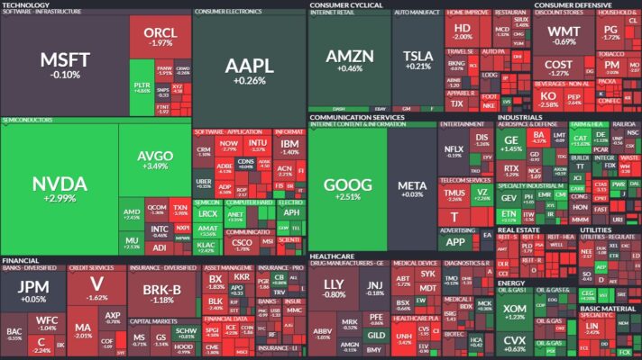 昨日のS&P500のヒートマップを眺めると、多くの銘柄が下落したことがわかります。