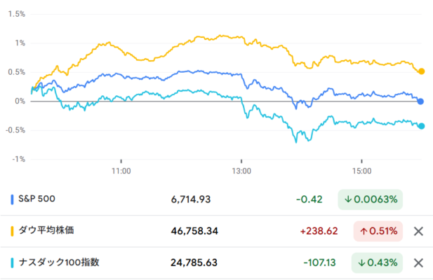 マグニフィセント7は3銘柄が上昇、4銘柄が下落。特にMETAが▲2.27%、TSLAが▲1.42%、AMZNが▲1.30%と大きく上げています。