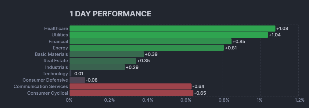 ヘルスケアと公益事業が1%を超える大きな上昇。今週はヘルスケアが好調でしたね。