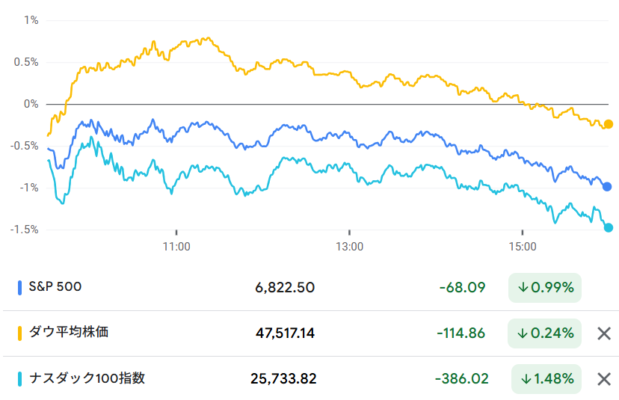 また、前日決算発表したMETAは、年々出資額が増えていることが懸念され株価は急落。