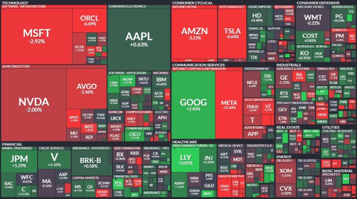 特に決算発表のあったMETAやMSFTなどの大型株が急落したことで、指数にも大きな影響があったようです。