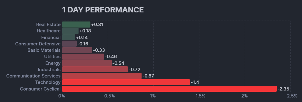 昨日のセクター別パフォーマンスは3セクターが上昇、8セクターが下落した1日となりました。