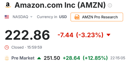 アフターで決算発表のあったアマゾンは、クラウド部門のAWSが力強い成長を示し、株価は時間外で一時13%も急騰しました。