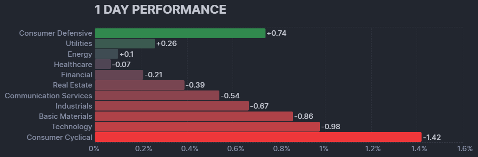 一方で、大型株を多く含むセクターは売られており、一般消費財はテスラ急落の影響を受けました。
