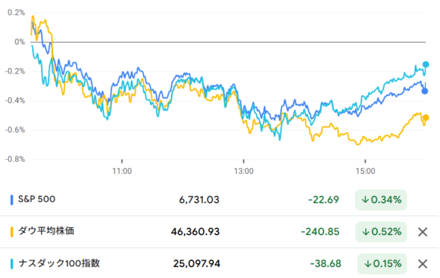 マグニフィセント7は3銘柄が上昇、4銘柄が下落しました。特にMETAが+2.18%、NVDAが+1.83%、TSLAが+1.29%と大きく上げており、AAPLは▲1.56%と大きく下げています。