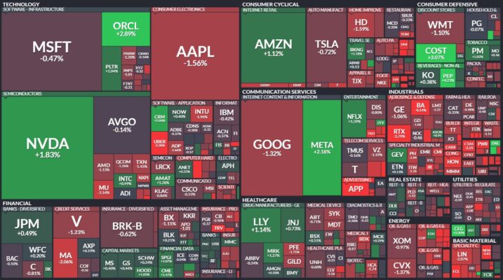 昨日のS&P500のヒートマップを眺めると、多くの銘柄が下落していることが分かります。