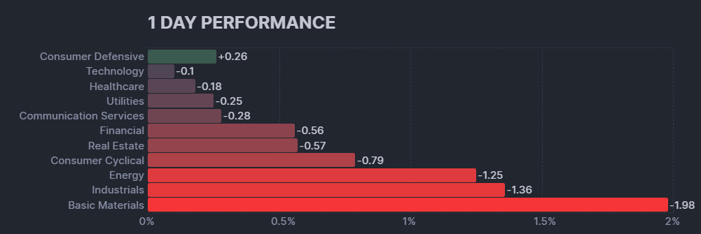昨日のセクター別パフォーマンスは1セクターのみが上昇他10セクターが下落した1日となりました。