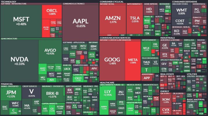 昨日のS&P500のヒートマップを眺めると、上昇した銘柄の方が多かったことがわかります。