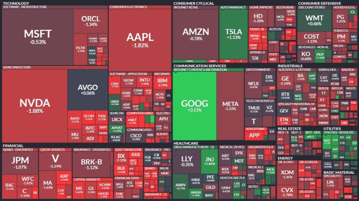 昨日のS&P500のヒートマップを眺めると、ほとんどの銘柄が下落したことが分かります。