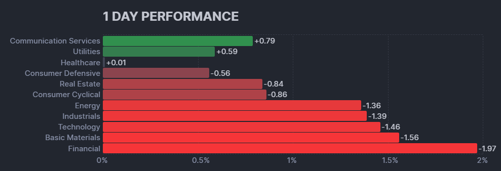 昨日のセクター別パフォーマンスは3セクターが上昇、8クターが下落した1日となりました。