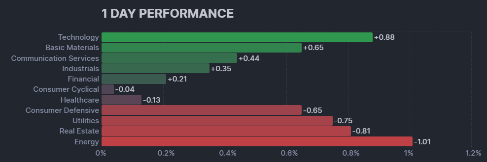 昨日のセクター別パフォーマンスは5セクターが上昇、6セクターが下落した1日となりました。