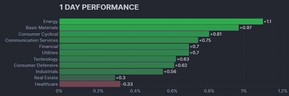 エネルギーが1%を超える大きな上昇ですが、その他セクターの上げ幅は限定的。