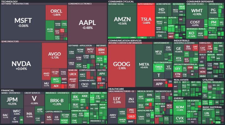 昨日のS&P500のヒートマップを眺めると、多くの銘柄が下落したことがわかります。