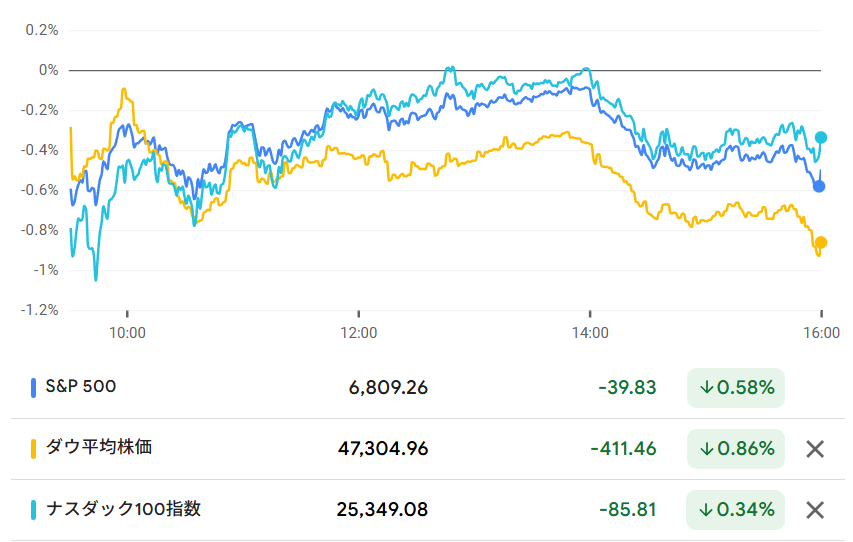 昨日の米国市場は下落しました。