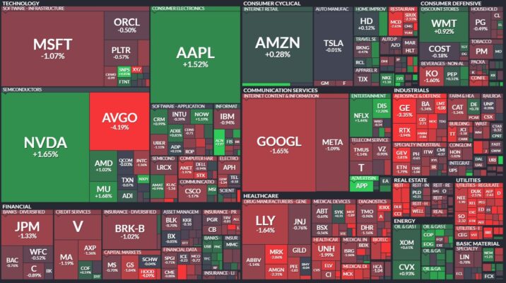 昨日のS&P500のヒートマップを眺めると、多くの銘柄が下落したことがわかります。